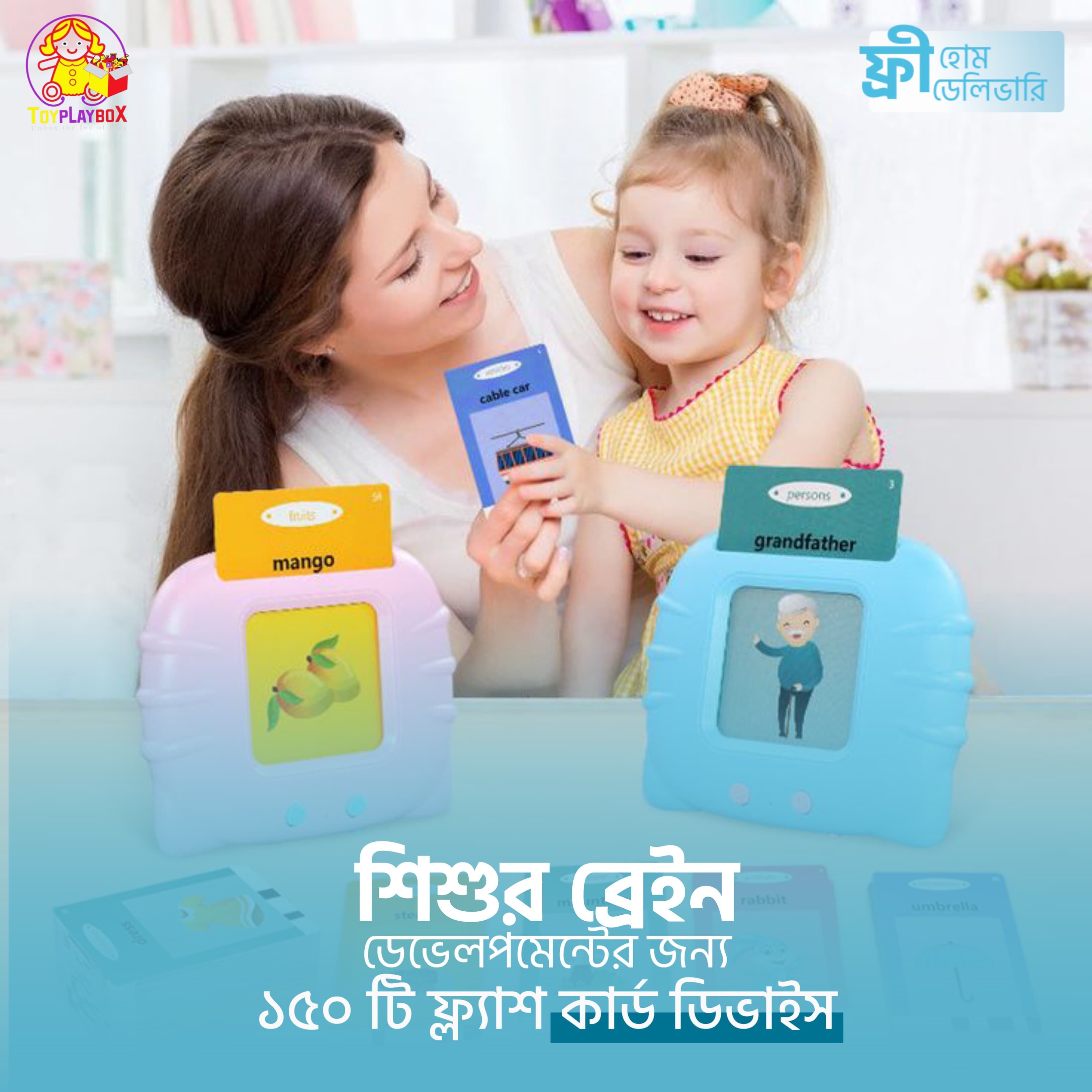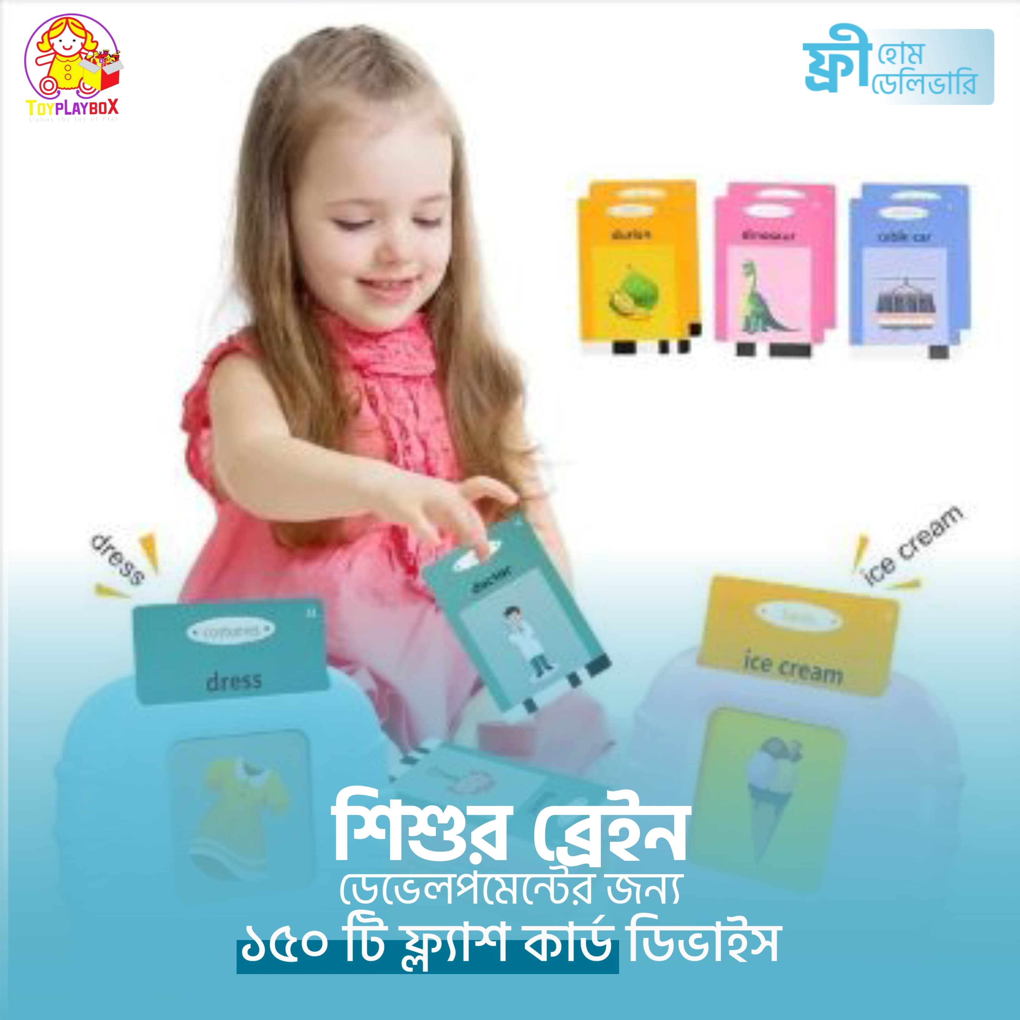 ১৫০ টি কার্ড এবং কার্ডের দুই পাশেই প্রিন্ট থাকার ফলে ৫০০ টি শব্দ শিখতে পারবে। একটি চার্জার কেবল যা ব্যাটারি দরকার হবে না ফলে অতিরিক্ত কোন খরচও নেই।